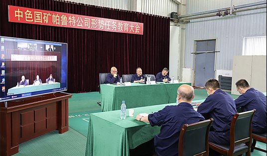 会议以视频形式召开。中色国矿领导班子成员,全体中方员工参会。